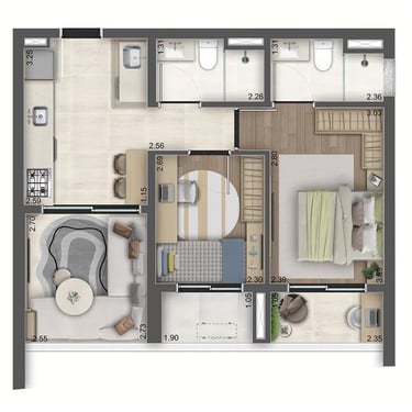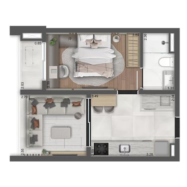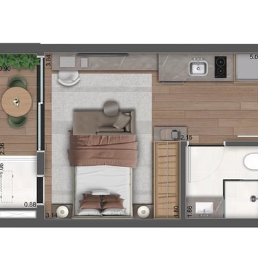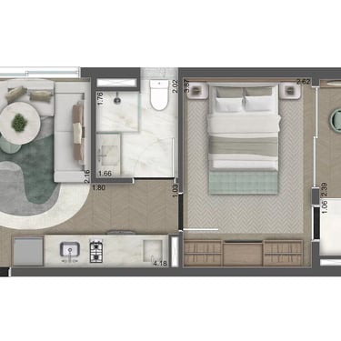 • Studios: – 25,72m² a 32,32m²– sem vaga