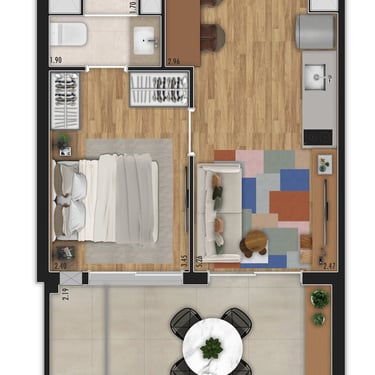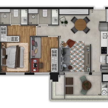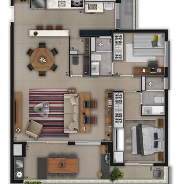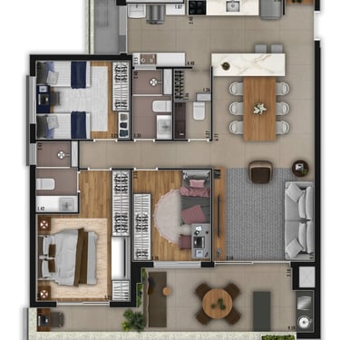 115m² com 3 dormitórios, sendo 1 suíte e 2 vagas, com opção de planta para 2 suítes com sala ampliada.